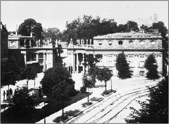 Parterres und Wasserspielen terrassiert angelegt. Nach dem Sturz von