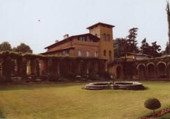 Pergola ein zinnenbekränzter hoch aufragender Turm, welcher sich